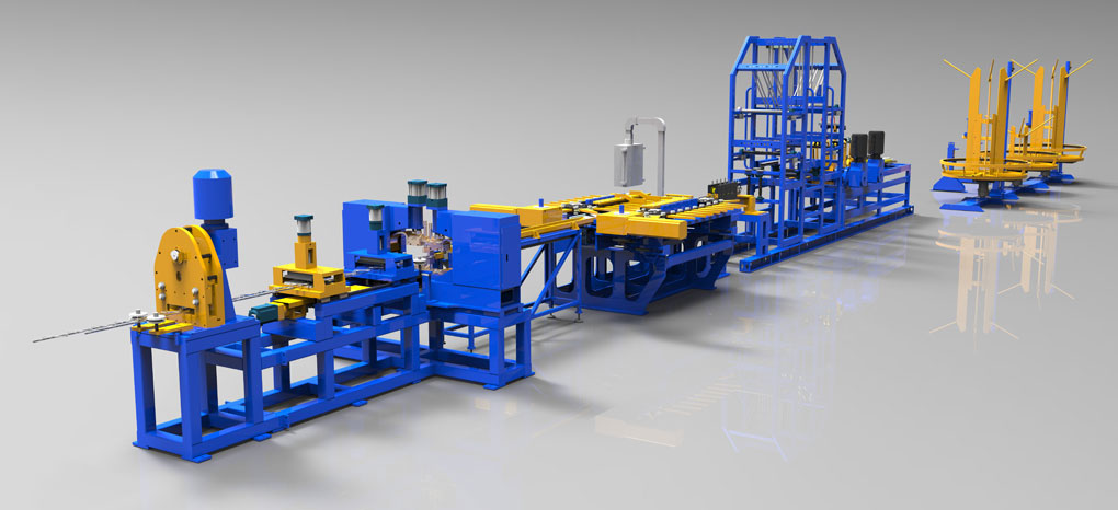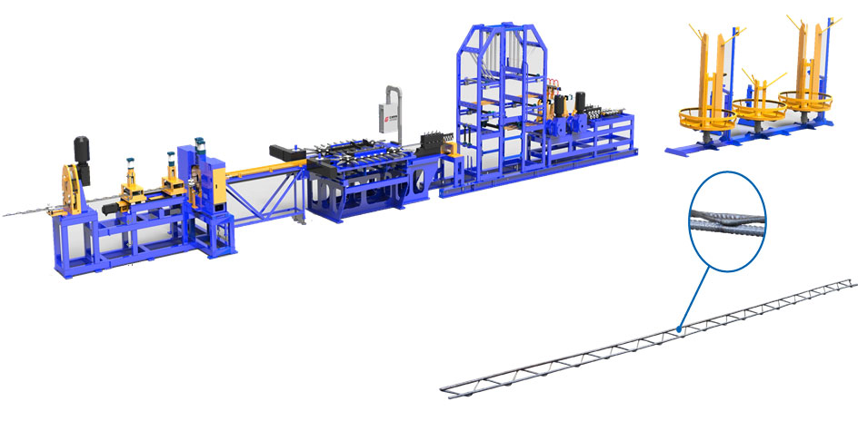 鋼筋調(diào)直機(jī)構(gòu):主筋和腹桿筋由盤料經(jīng)矯直機(jī)后矯直后焊接,自動化程度高,生產(chǎn)效率高. 焊接主機(jī):自主研發(fā)的焊接氣缸.焊接速度快,從而提高整體焊接生產(chǎn)線的生產(chǎn)速度.